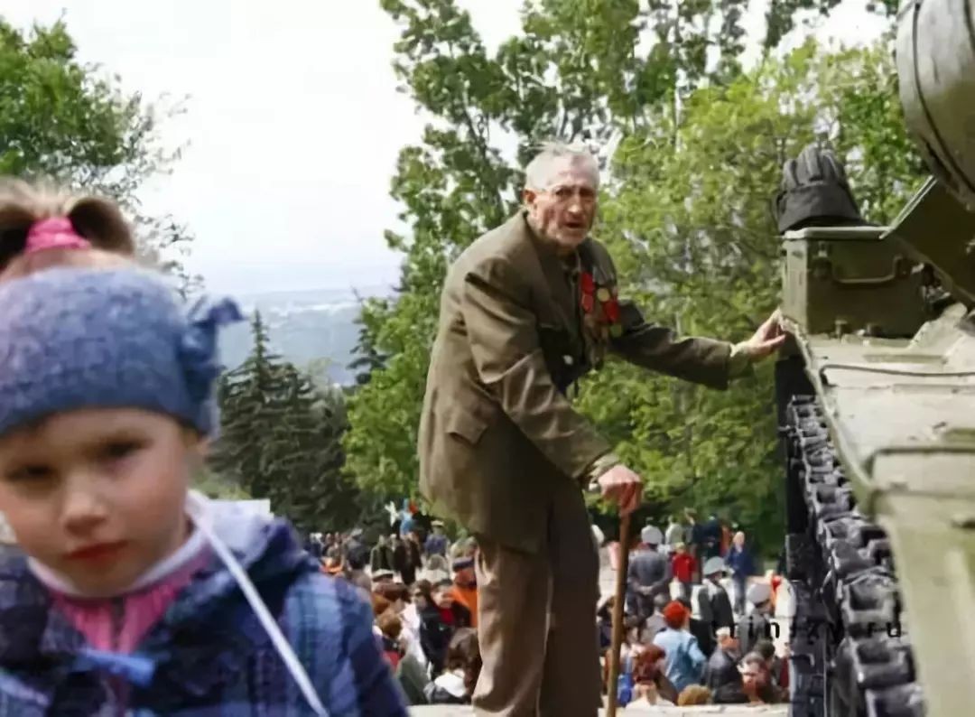 其实,相似的事情,此前也多次在俄罗斯出现——前几年的俄罗斯胜利日活动中,一位苏联老兵,居然发现了自己当年驾驶的那辆T34坦克,他独自抚摸着坦克,最后跪倒在曾经的座驾旁边,泪流满面。