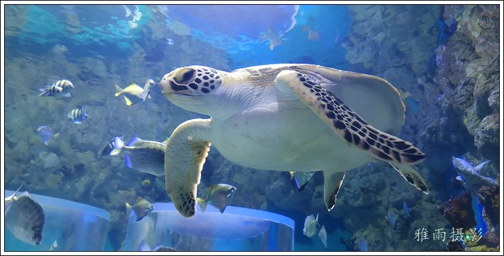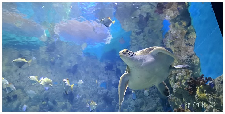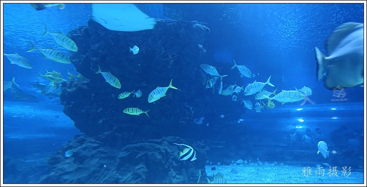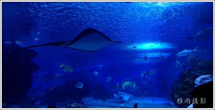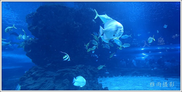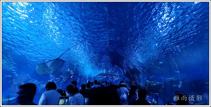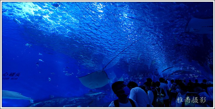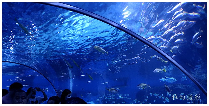 海底隧道呈拱形观赏面的180度屋海底隧道,长35米,在国内海洋馆中体量最大,站在海底除道上观赏时,形态各异色彩缤纷的各种鱼类将在游客身边、头顶畅游,使客们仿佛置身真正的海洋世界。