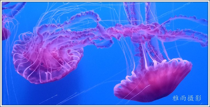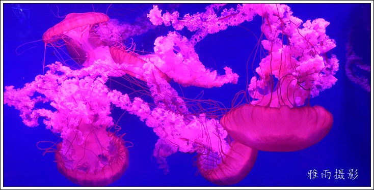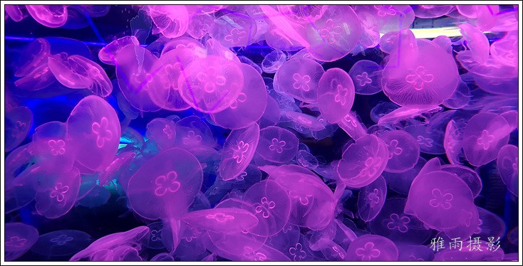 珊瑚展区非常吸引眼球,色彩艳丽,形态优美的各色珊瑚,将海底世界的美妙与瑰丽表现得淋漓尽致。如果说珊瑚是静态的最美,那水母则动态的最美。