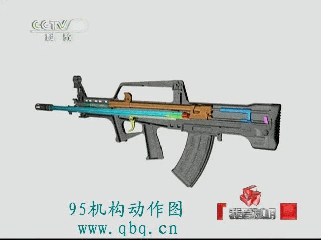 有人认为QBZ-95是FAMAS或斯泰尔AUG的拷贝,但从操作方式来看,可以看出是完全不同的枪。 QBZ-95采用短行程导气式, 事实上,我国部队采用短行程导气式已经很久了。在模仿生产苏联制造SKS步枪时掌握了这一方法,在研制81式自动步枪的同时,也采用短冲程方式。因为具备了充分的技术,特别是在5.8毫米子弹的最初试验评估中,使用了以81式为基础的87式步枪,积累了经验,因此推测该系统是原封不动地移植到95式。像启动构造说明图一样,在回转机头上有3个闭锁凸笋,机头与枪机框之间以圆柱体进行连接,圆柱体上有一个连体的开闭锁及前后运动的带动凸起。