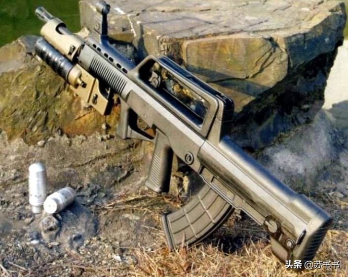 带组合榴弹发射器的QBZ-95步枪。可以看出,调节杆安装在枪托的后面
