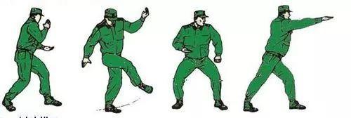 2.要求:垫步前蹬快,抱腿顶摔猛。如下图: