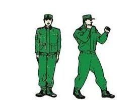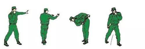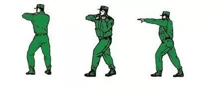 预备姿势:在立正的基础上,听到“擒敌拳预备”的口令,身体左转成格斗势。如下图: