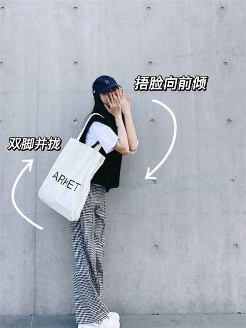 正面站立拍照,不知道摆姿势,可以让自己的双手自然搭在包包上,侧颜面对镜头,既能展示出包包的设计,又能突出双腿的纤长,营造出自信和时尚的氛围,也是又美又好看的。