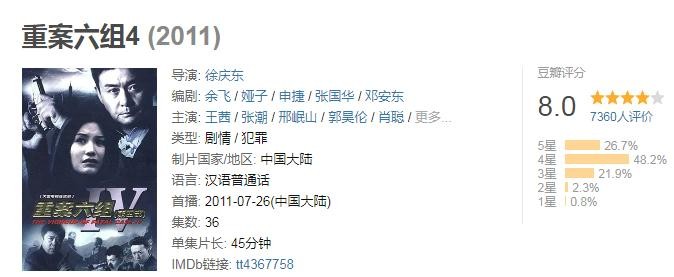 从2001年上映到2010年,一共推出过四部136集,是比较长寿的剧集了。而且这四部小成本的刑侦剧,竟然豆瓣评分还都不低。