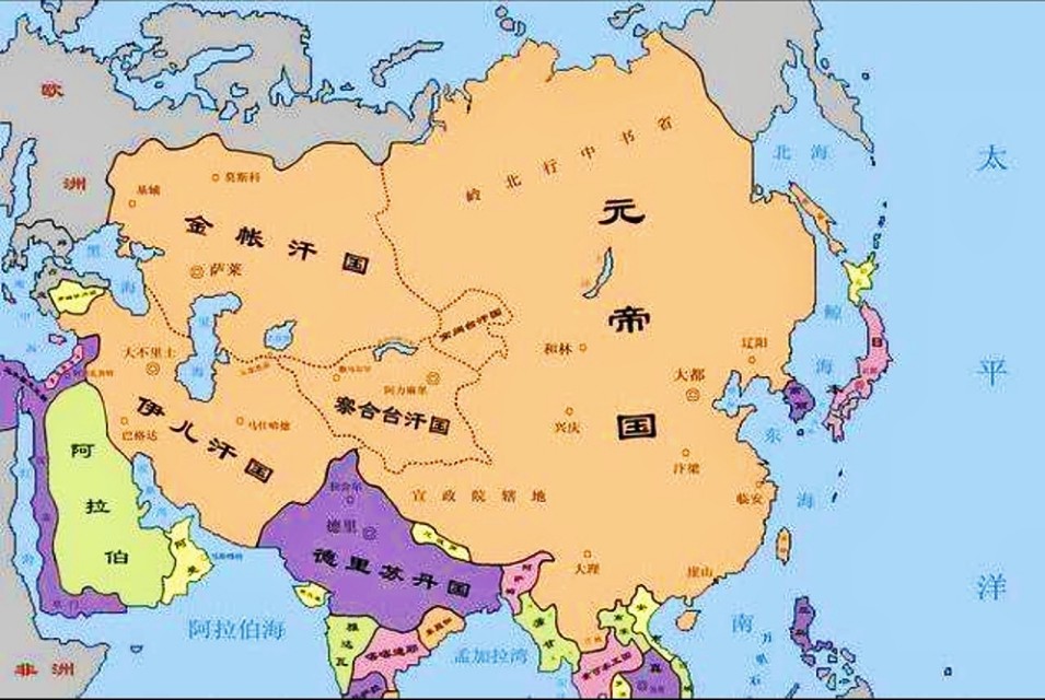 由元太祖成吉思汗所建立的蒙古帝国,自1260年忽必烈即位以后,逐渐分裂成多个国家,演变成为忽必烈的元朝(大元帝国)以及位于其西部的四大汗国,其中元朝包括今日蒙古国本土及中国的大部分地区。