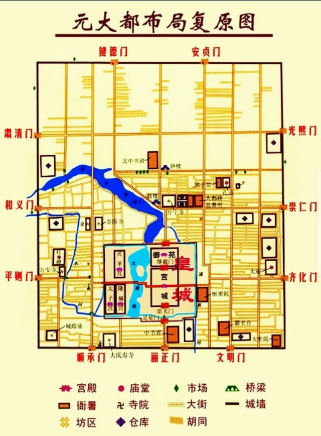 从元世祖忽必烈至元四年(1267年)至元顺帝至正二十八年(1368年)的101年间,元大都一直作为元代的都城。