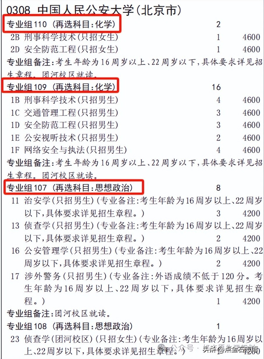 公安类院校物理类主要为“物理+化学”和“物理+政治”;