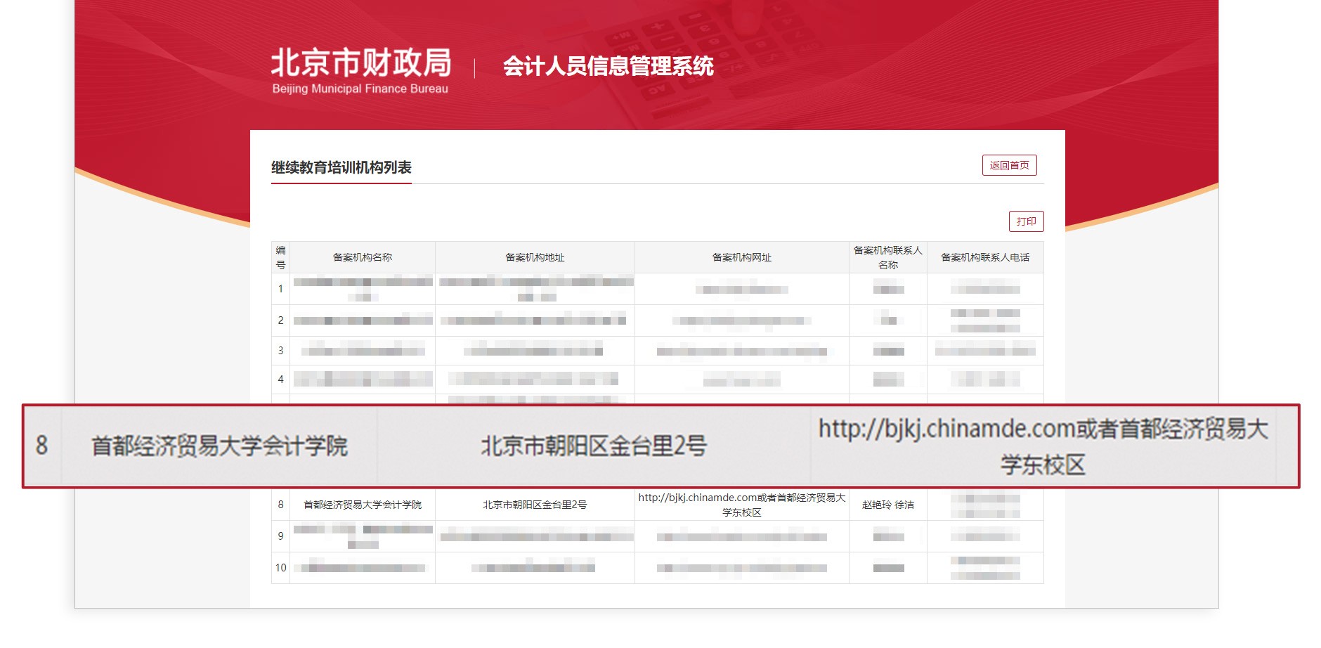 选择网络培训方式的学员,请选择北京财政局公示的培训单位进行学习。首都经济贸易大学会计学院主办平台“北京市会计人员继续教育网络平台