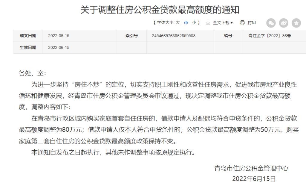 为进一步坚持“房住不炒”的定位,切实支持职工刚性和改善性住房需求,促进岛城房地产业良性循环和健康发展,经青岛市住房公积金管理委员会审议通过,现决定调整岛城住房公积金贷款最高额度,调整内容如下: