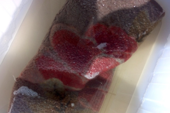 找一个大一点的盆子,将盆子里装入2/3的水,再倒入10克左右的食盐搅拌均匀,把门垫放入食盐水里浸泡。门垫清洗的窍门就是要用盐水浸泡,这样门垫颜色更加鲜艳不易掉色,而且还会变的柔软。