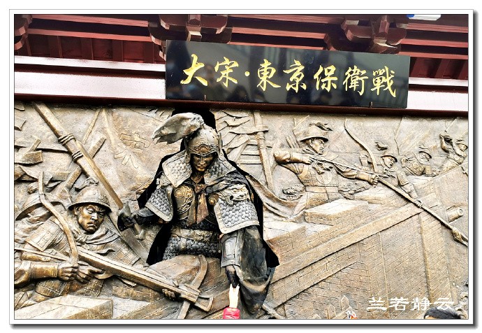 见到“大宋 · 东京保卫战”的大幅广告,这是另外一个大型实景演出,展现了一场关乎北宋存亡的战役。突然壁画上的人动了起来,还跟过往的游客握手。