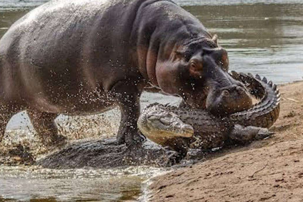 即便是成年鳄鱼也无法承受被河马咬上一口,因为河马的牙齿很可能会击断它的背部骨骼。并且鳄鱼大多是将猎物拖到水中淹死,但是河马却是水中能手,可以说对它毫无用处,所以河马成为鳄鱼的天敌是当之无愧的。
