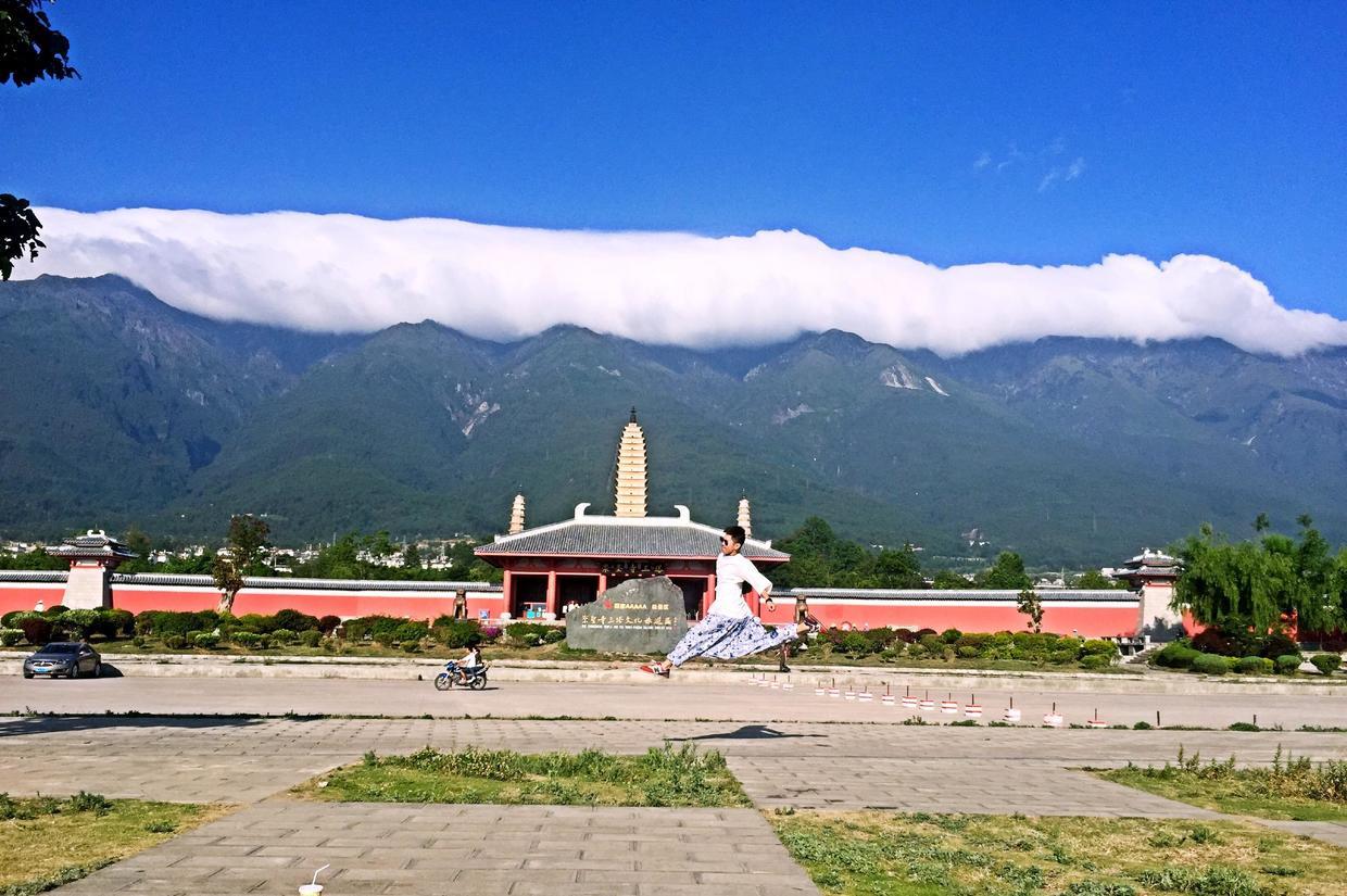 背景是崇圣寺三塔,再往后,是苍山,最美的,是苍山上,像棉花糖一样白白软软的趴在山上,可爱极了。