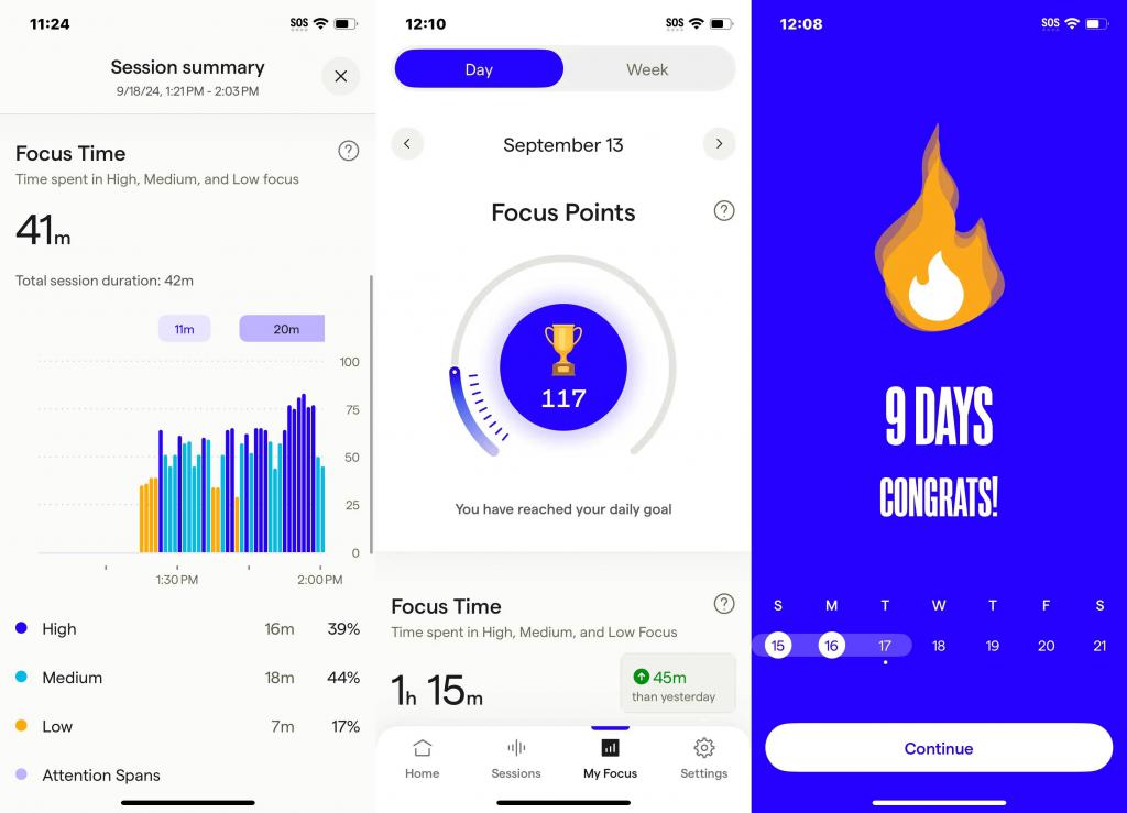 Wired 记者艾米丽 · 穆林在体验后表示满意,并介绍这款这款耳机的手机软件设计类似于一款运动 APP 或多邻国式的学习打卡 APP,当用户持续处于专注状态一段时间后会给一些奖励积分,并且提醒可以休息一段时间,还有一些与运动 APP 类似的打卡小奖励。