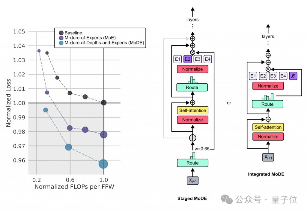 同时,研究团队还探讨了 MoD 和 MoE 结合的可能性—— MoDE。
