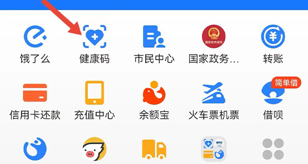 2、使用支付宝查询时,需要先进入支付宝主页,在信息栏中选择“健康码”,点击进入到健康码的页面中。