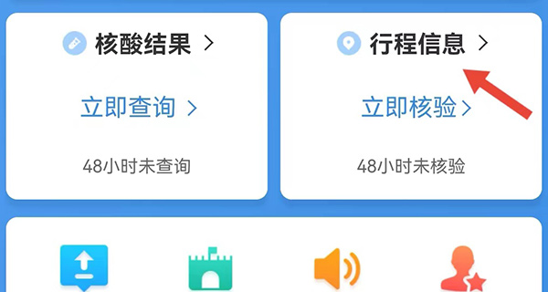 5、在页面中点击“行程信息”,进入页面后便可以查看到自己的行程码。