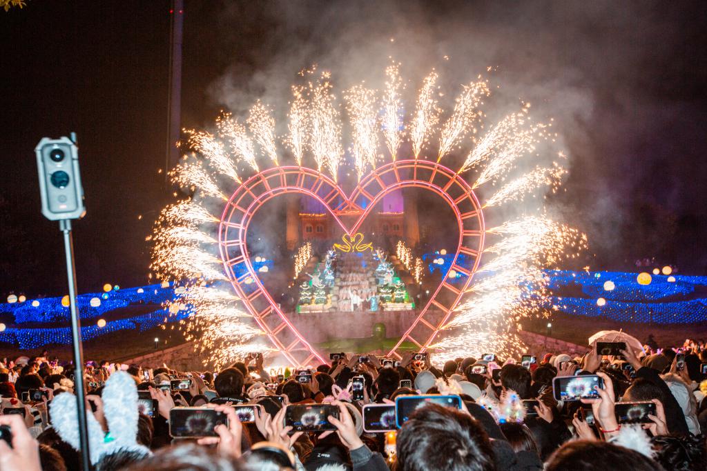 活动现场,市民及游客高举着火把,组成 "2025" 的字样,燃烧着的数字象征着火力全开、热情似火的 2025 年,此外还有 60 米高的亚历山大灯塔、文明湖音乐激光焰火水舞秀等,将新年的氛围感营造地分外热烈,众多游客在此感受了一场岁末狂欢,共同迎接新年的到来。