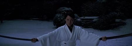 这个女人,吊梢眼,满脸雀斑,不是严格意义上的美丽,但是眼角眉梢皆是风情,就是有种独特的美。纯白的和服,纯白的雪,温柔一刀,不寒而栗。
