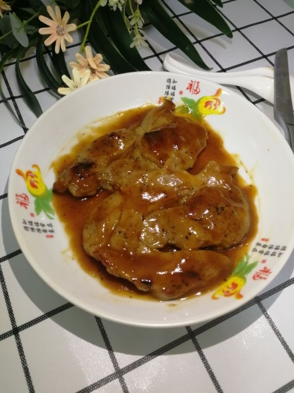 配料:黑胡椒适量,盐一勺,酱油一勺,白糖少许,生粉一勺,番茄酱两勺,蚝油一勺