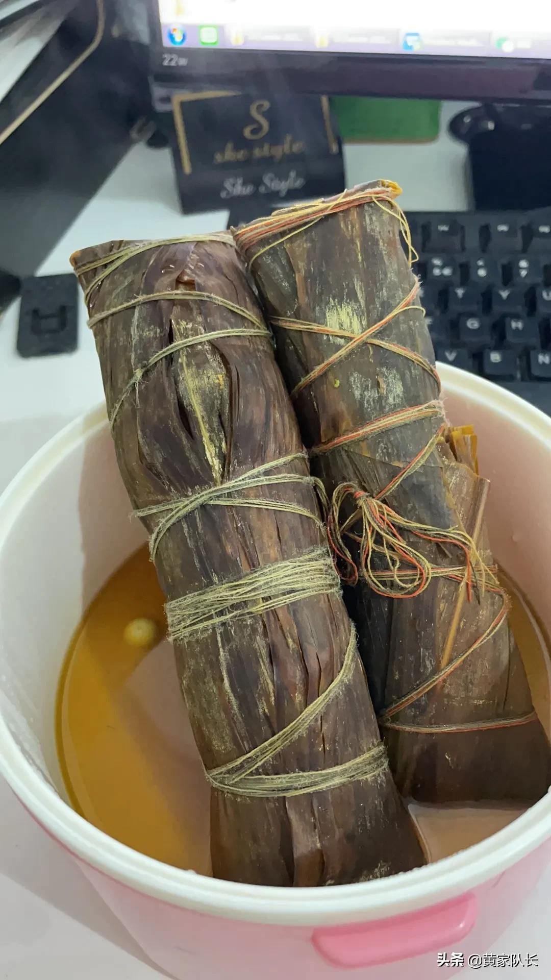 都会另外拿三个碗或盘子装些鸭肉、和其他菜、装上米饭、那一条灰水粽先放一边