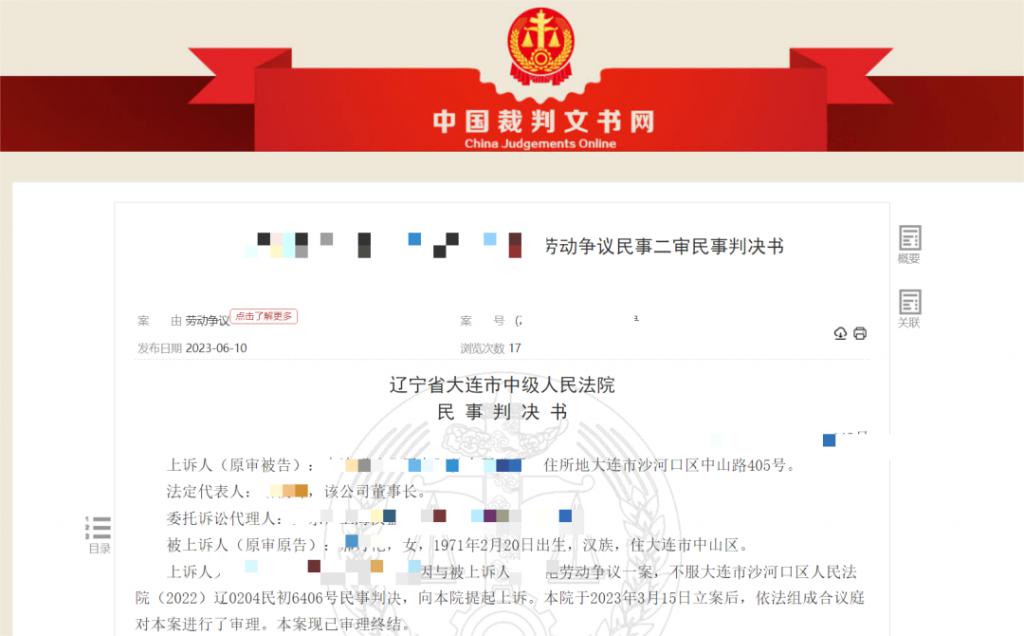 近日,辽宁省大连市中级法院审理了这一劳动争议案,最终,二审法院判决公司赔偿李雪 1 万余元。