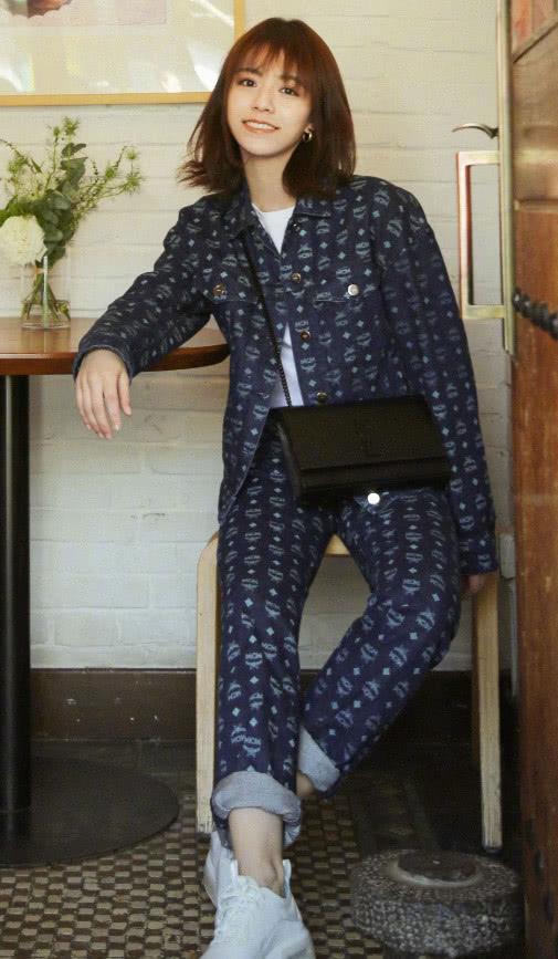 她身穿一套牛仔套装,这套风格的穿搭是比较帅气的,衣服上面有可爱的印花设计,显得整体没有那么单调,她内搭一件简单干净的白色打底衫,简单又好看,现在的她美到不敢认!