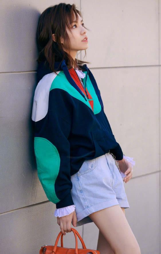 其实平时生活中的宋芸桦也是很会穿搭的,她身穿一件拼色的外套,这件上衣的设计很有个性呢,给人的感觉很有活力,搭配一条浅色系的牛仔短裤,这样的搭配很是时髦。