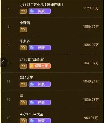 YY年度神豪榜单出炉:第一名竟然不是哦导,而是他