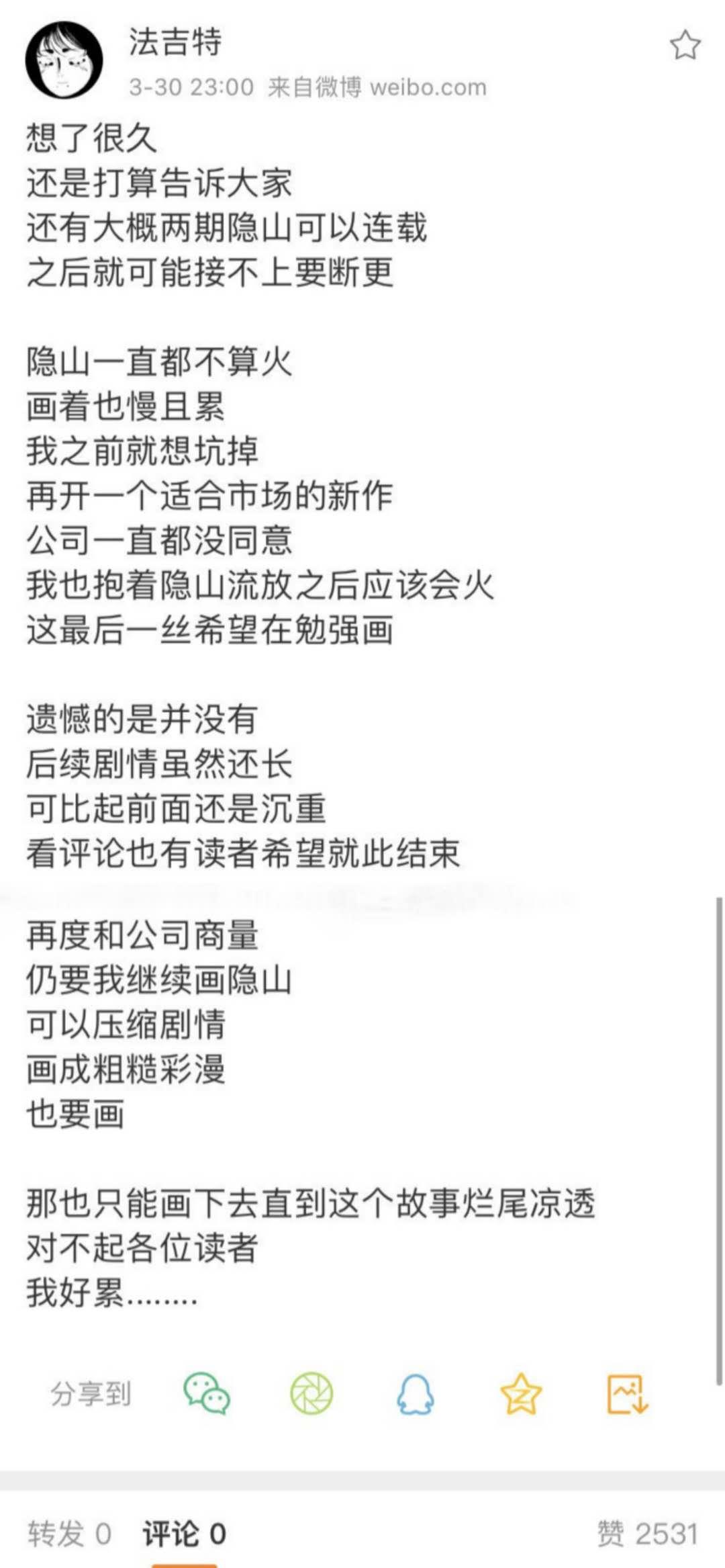 法吉特不是第一位清空微博的漫画家,自然也不会是最后一位。