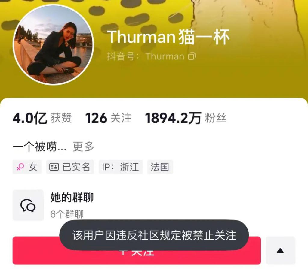 中国青年报记者注意到,目前,@Thurman 猫一杯 账号已无法关注。