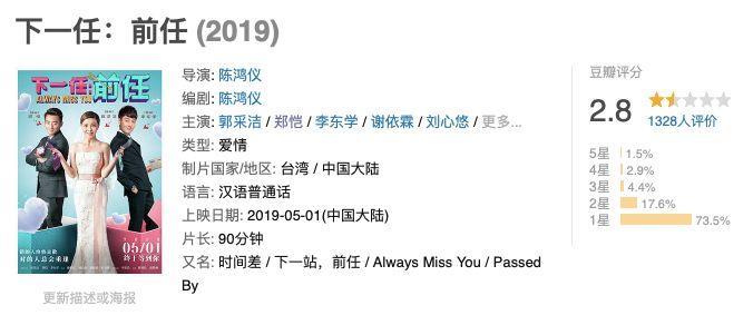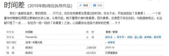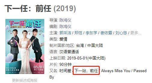 这部拍摄于2015年的台湾团队主导电影,是台湾导演陈鸿仪的导演处女作,原名《时间差》,和《前任》系列的田羽生导演没半毛钱关系,甚至连拍摄时间都比《前任3》早的多!