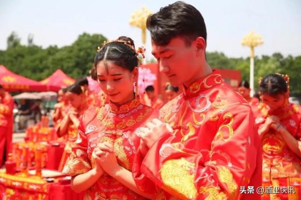 济源市工商联副主席兼秘书长卢一兵、汾酒销售公司河南省区经理马志勇、汾酒销售公司河南省区副经理朱志龙、汾酒销售公司济源城市经理马小杰、济源鸿福祥商贸有限公司总经理李淑芳等各位嘉宾出席了本次活动并致贺辞。30对新人在礼乐声中身着中国传统婚服、行古礼,用一场回归传统的中式婚礼见证彼此爱情,牵手一生。