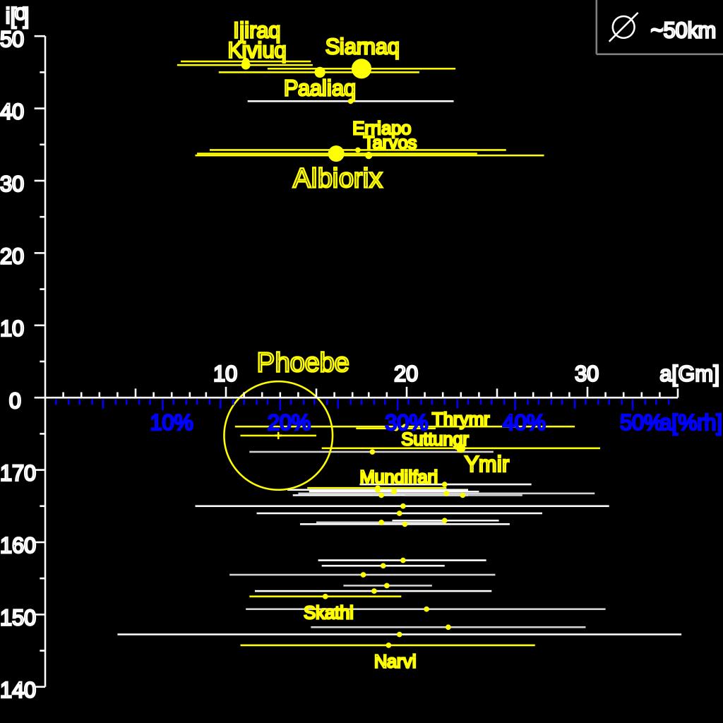 图解:土星卫星的相对质量(土卫一和其他比土卫二小的卫星在此图未能显示出来。