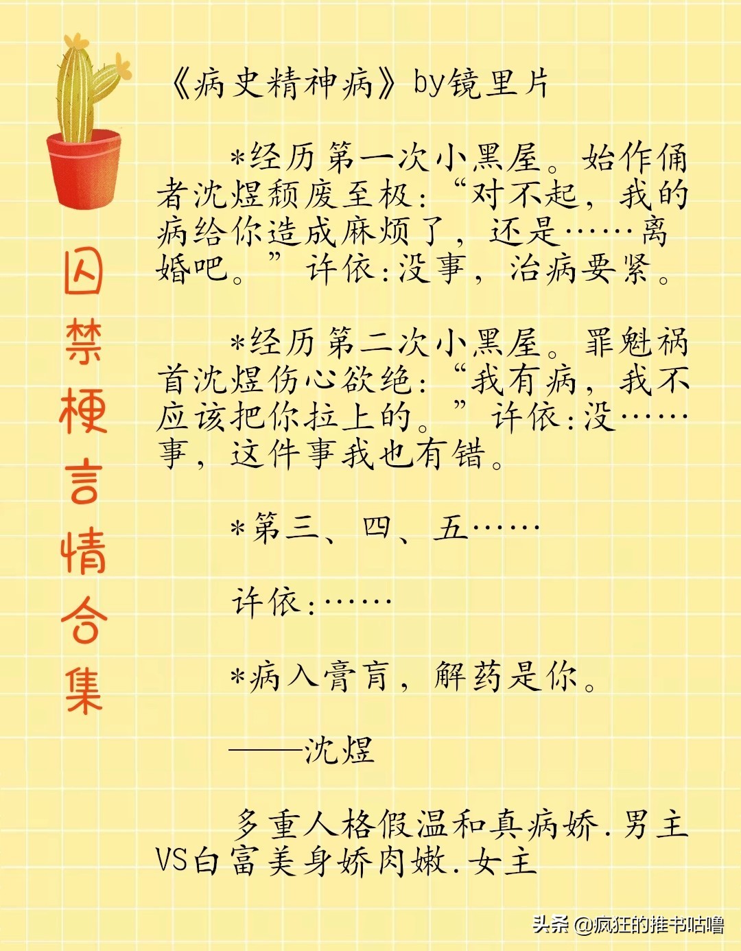 在这里强推《病式精神病》,最近才刚发现的老文,男主多重人格,有病,真的有病,但是也真的很好看(。・ω・。)ノ♡