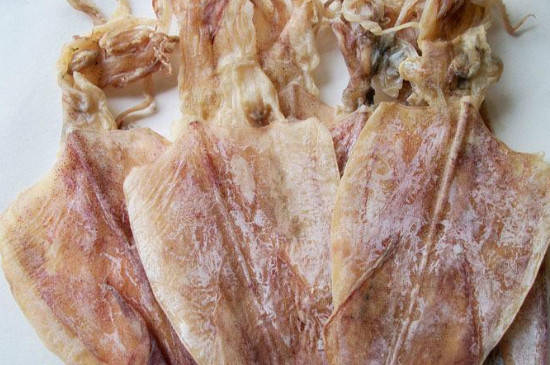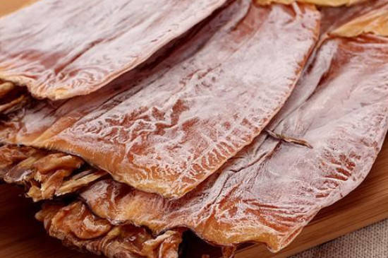 一般来说没有剥皮的鱿鱼是肉色的,而干鱿鱼的正面会有点发黑的痕迹,这其实是正常的,因此干鱿鱼发黑的那一面就是鱿鱼的正面。在烹饪干鱿鱼的时候,要先泡发干鱿鱼再切块,这样口感比较有嚼劲。