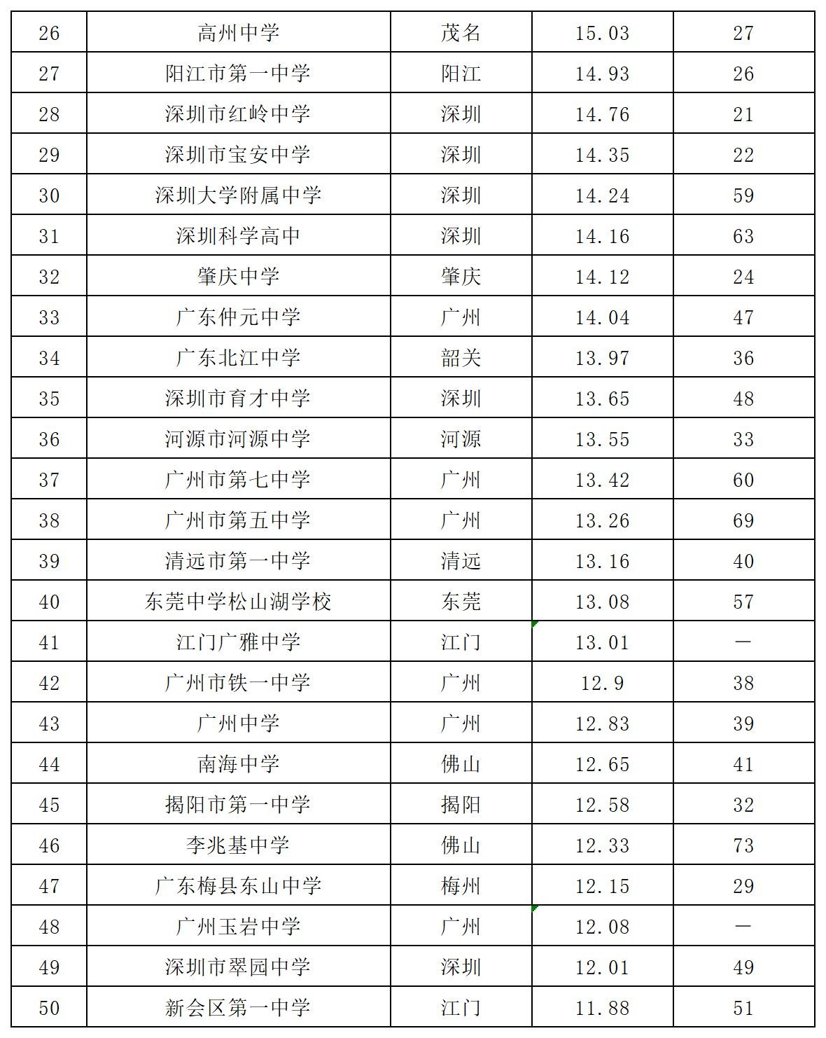 2024年广东省100强高中排行风云榜