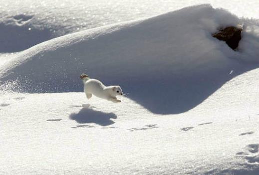 白鼬在逮兔子时,会像抽筋一样上窜下跳,而兔子会被这种动作深深吸引,一动不动目不转睛的盯着看,白鼬就这样接近兔子然后抓住它——虽然叫白鼬,不过在夏天的时候是褐色的,冬天才是白的。