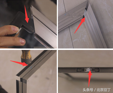 四角拼接好后,借助锤子将边角敲进框内,要做到尖点对尖点,避免错位发生导致飘窗高低不平。接着在纱窗最底部距离两边差不多3cm的样子卡进一个滑轮,方便飘窗使用。