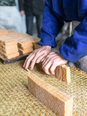 古法制作小片糖,完全是靠手工操作,我看见师傅的手上颜色磨出了许多性寒老茧,每一块小片糖都是他们用双手使劲掰做成出来的。