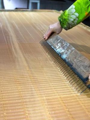 两位师傅手持特制的工具,一推一抹,配合着功效将糖浆均匀地铺满整个台面,在他们的手下,草席台面像变魔术一样成了一面光亮平滑的镜面,片糖和土冰糖。