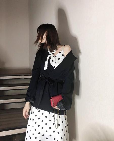 看到白底波点,我首先想到的一个词,就是恬静。白色总给人一种干净、素雅的感觉,加入波点元素之后,自带温柔属性,仿佛给人一种不食人间烟火的感觉。如果你性格比较安静,可以选择这一款波点裙,和你的性格特别搭。