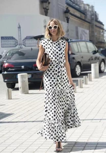 波点连衣裙作为春夏单品的重头戏,一定是时尚甜姐儿必不可少的~选择不同颜色的波点连衣裙,可以完成不同的风格。