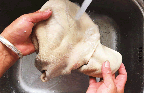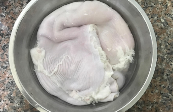 完成以上3步即可轻松洗净羊肚,但是羊肚如果表面有黑膜,那么需要另外的方法才能去除,具体如下: