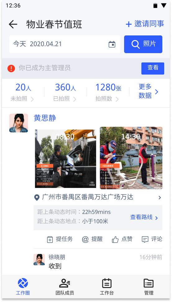 在团队管理中,时常无法对人员进行有效管理,无法实时对人员进行监督,因此工作效率一直持续下滑,马克水印相机的团队工作圈就可以解决这类问题。只需要使用马克水印相机拍照,照片就会自动同步到工作圈,并且这些照片会自动分析成各种数据,而且上传地照片都可以查看和下载,存储到团队的相册内的,为日后工作的留存留证,追溯工作的源头留下影像。
