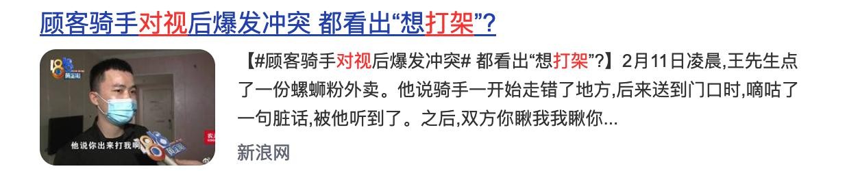 对视——产生情绪波动,内心不解——建立自我防备——挑衅升级——产生冲突或终止冲突。