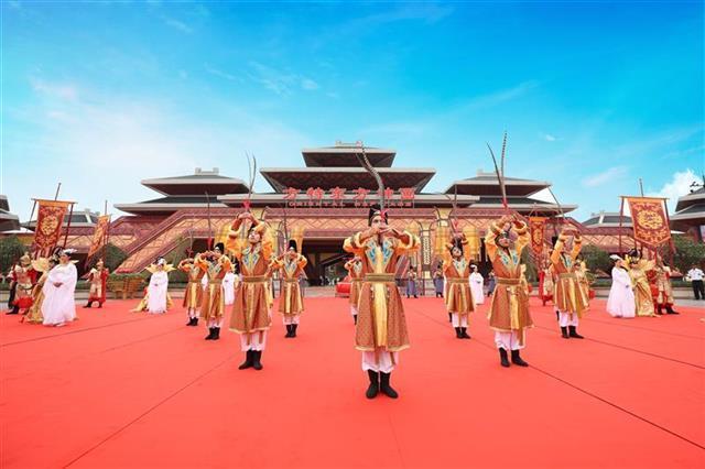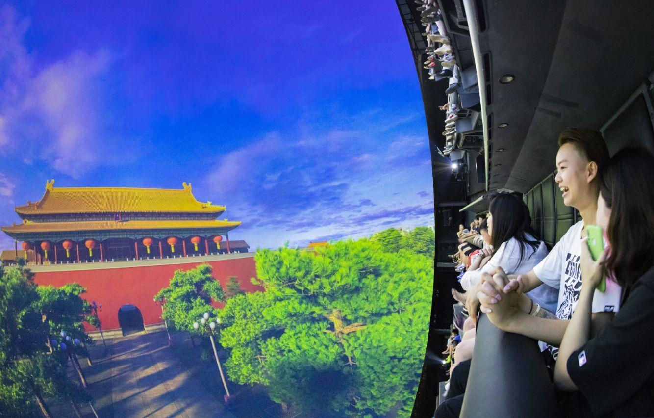 发布会现场,观众提前感受了根据传统文化创新演绎的大型情景项目《朝钟暮鼓》,以及由大量实景特效与立体影像相结合的大型主题游乐项目。比如,高15米、长56米、总面积840平方米的超级巨幕立体影院《九州神韵》,通过比高清电影还清晰8倍的大银幕,让大家穿越千年历史,徜徉在璀璨的华夏文明长河中。