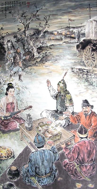 可是当他们刚欲饮下晶莹剔透的夜光杯中红如宝石的葡萄酒,就听到军营中琵琶声响起,催人上马出征。