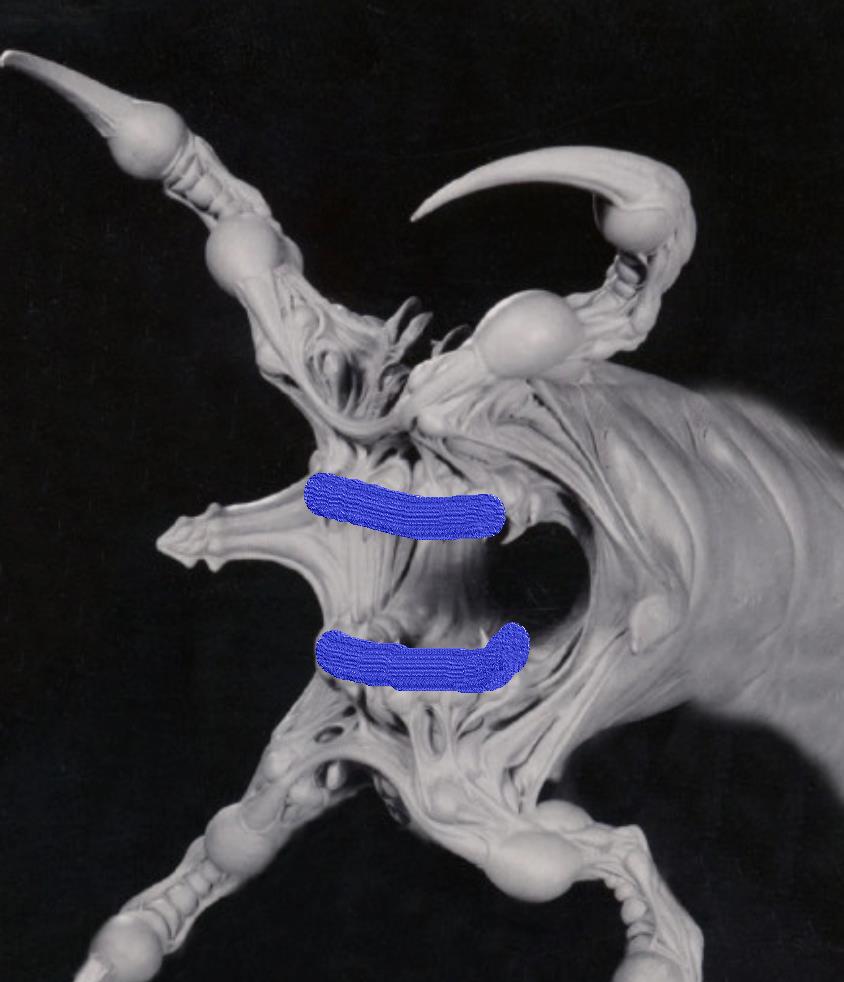 而它的进食方式更加奇特,抓到猎物后并没有送入那张满是獠牙的巨口中,而是直接由触手吞食,然后在触手中便开始消化,主体似乎只吸收食物营养液。